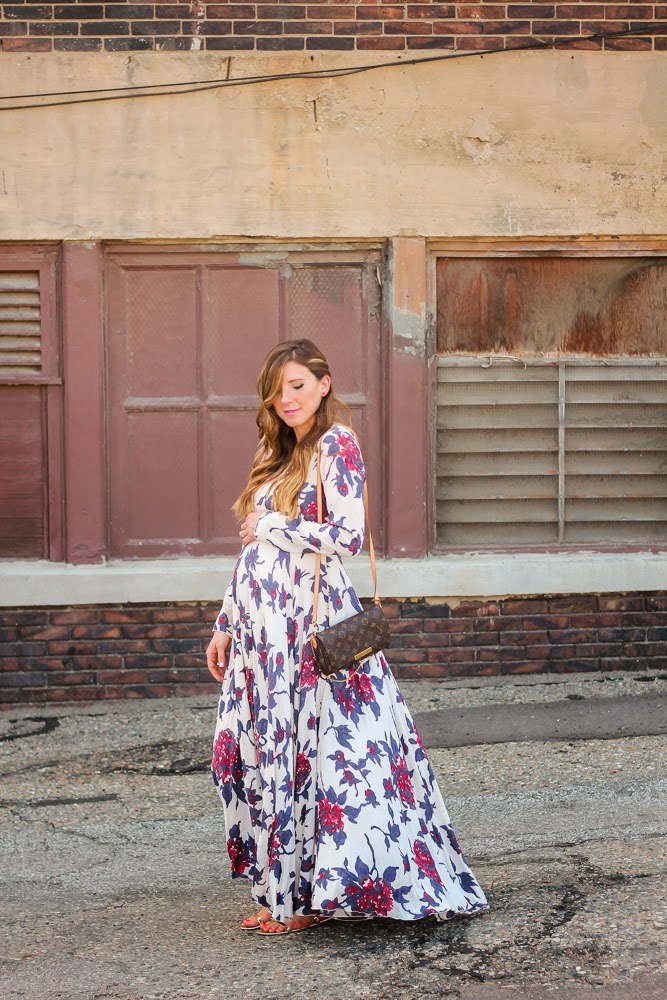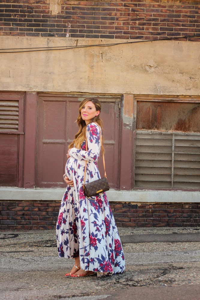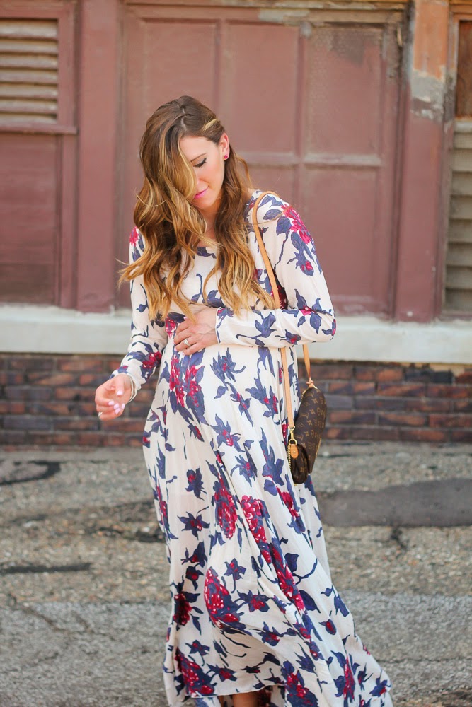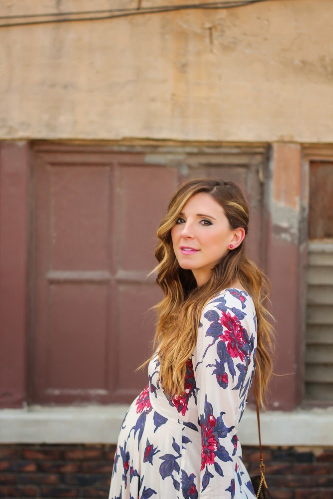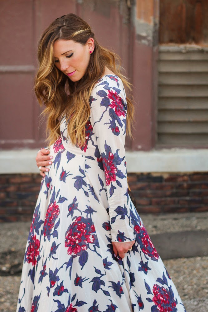 I am sharing a look I wore over the weekend to a wedding. When I was shopping for a dress to wear, I really wanted to get something that I could wear post baby bump. I have tried doing this throughout my entire pregnancy, aside from some maternity clothes essentials (jeans, bras, tanks). I tend to look for options that are flowy, and a bit over-sized. This Free People dress is non-maternity and the fit is perfect for the belly bump. It ‘s fitted right under the bust and accentuates the small of your waist. I loved the print and detailed back. What are your tips when shopping maternity?