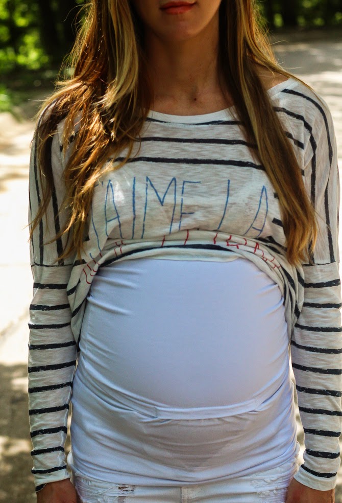 I have received a lot of questions as to how you can pull off non-maternity pants and what belly band to use. I only got two pairs of maternity pants, otherwise I used the Belly Button Band to pull off my normal pants.