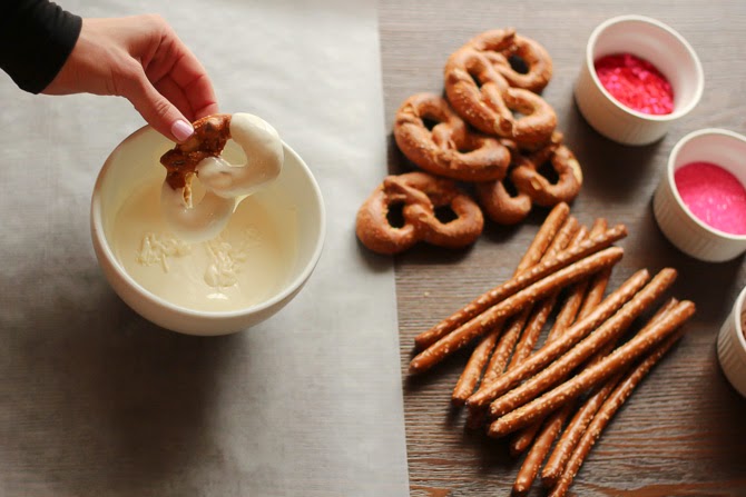 Let the dipped pretzels harden for about an hour. You can also place them in the fridge for a quick chill.