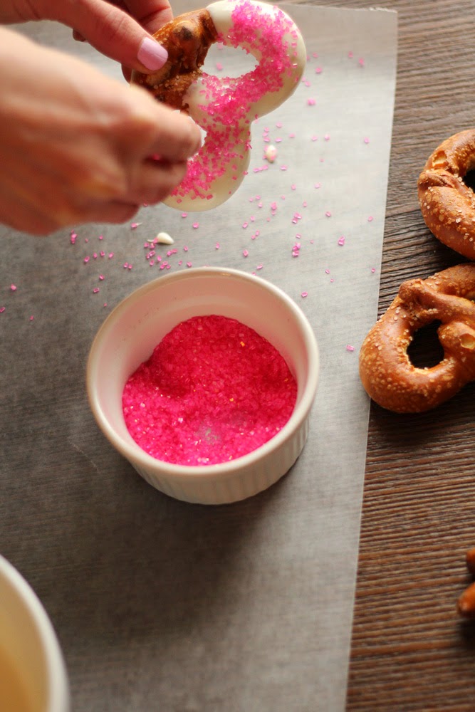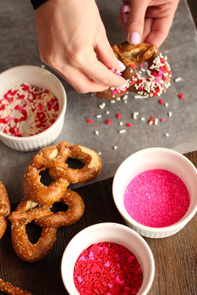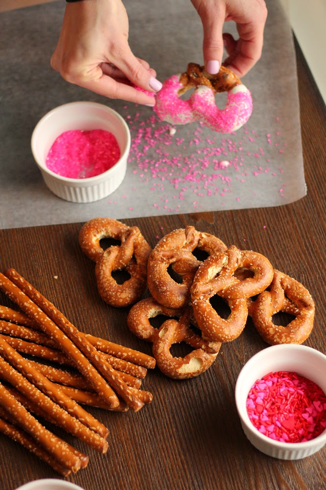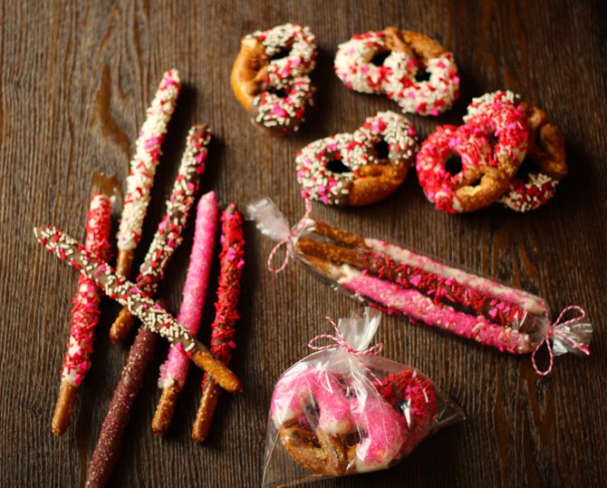 Wrap the pretzels in clear plastic wrapping and tie with a pink or red string. Makes for the perfect Valentine Treat!