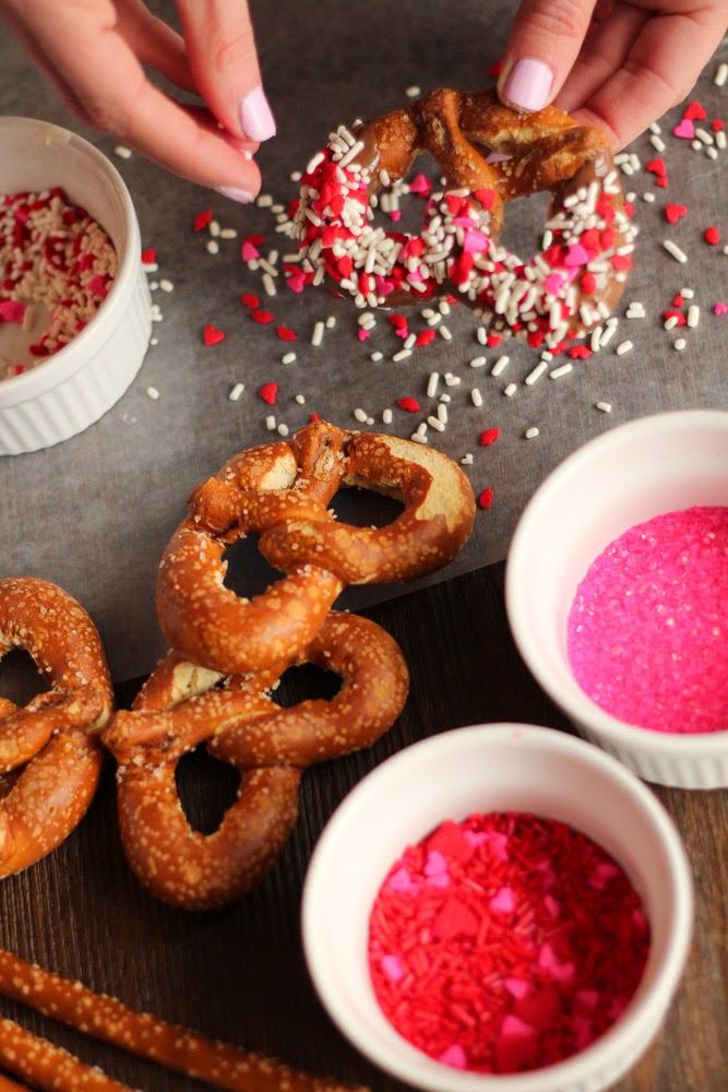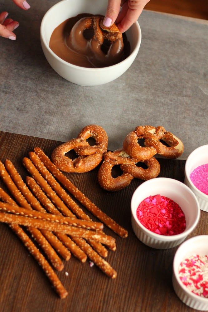 Sharing how to create these fun and easy dipped and decorated pretzels for Valentine’s Day. Who doesn’t love chocolate covered pretzels! They make for the perfect valentine treat and super easy!