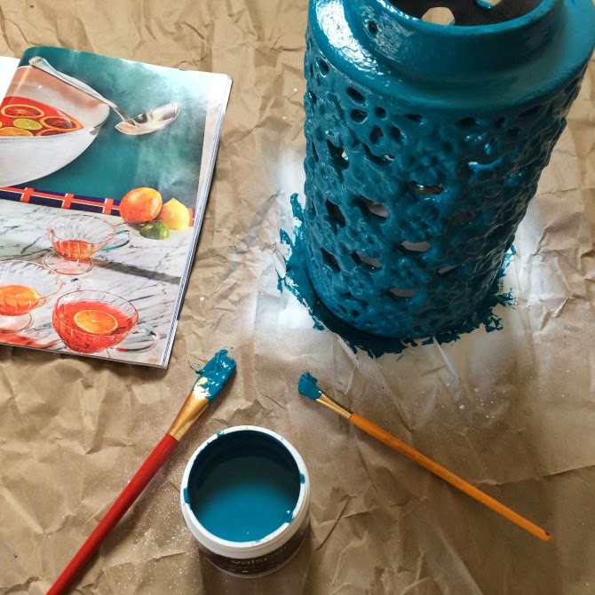 I’ve always been drawn to DIY projects. However, I am no Martha Stewart, so I like to keep my projects simple. With the debut of Spring and the fact that we are finally getting settled in our new home, I wanted to do some fun decor updates to add some personality and color to our space! For this DIY project, I wanted to update a couple home decor accents I already had around the house, including this glass lantern. Thanks to Valspar, I found the perfect color.