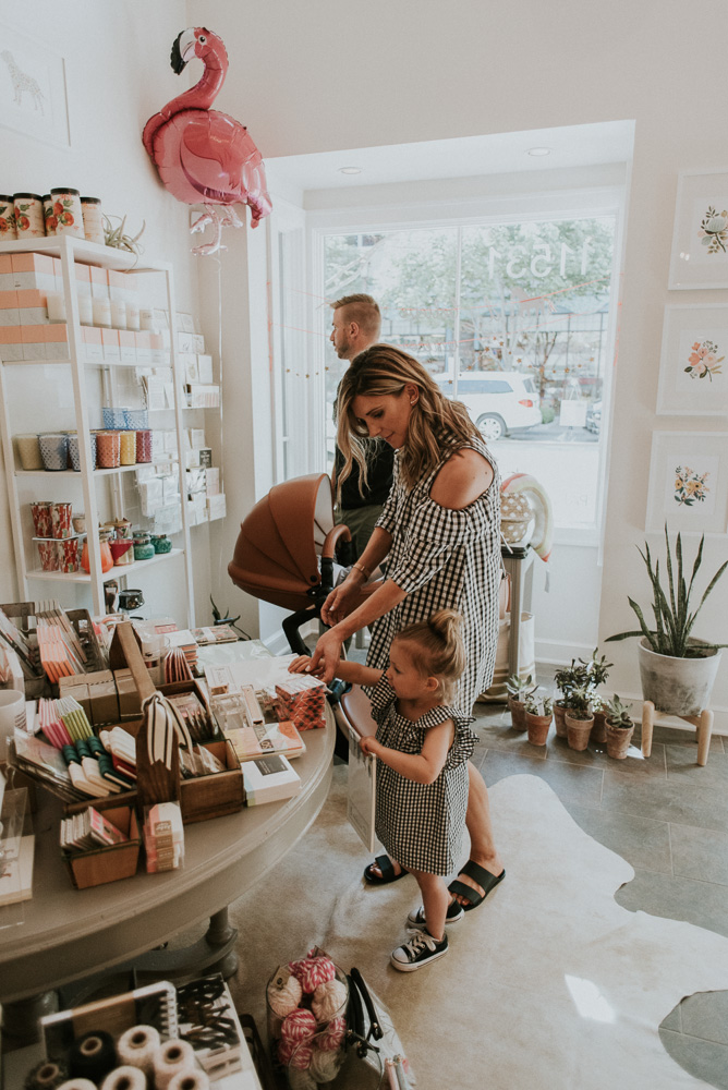 I love all of the shops. Pink antler is my go to shop for party supplies, cards, and gifts. Sutton is always spoiled with a ballon there – I am currently planning Sutton’s birthday party with Pink Antler!! I also make it a point to stop in Hand and Land – another fun place for gifts and home goods.