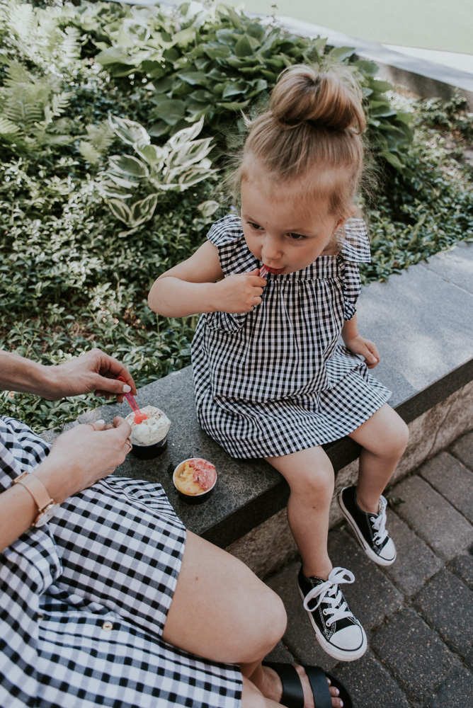 After dinner, or really most times we are there, you will find us at the Gelato place. We grab our gelato and head out to the green space to listen to music or watch the kids play!
