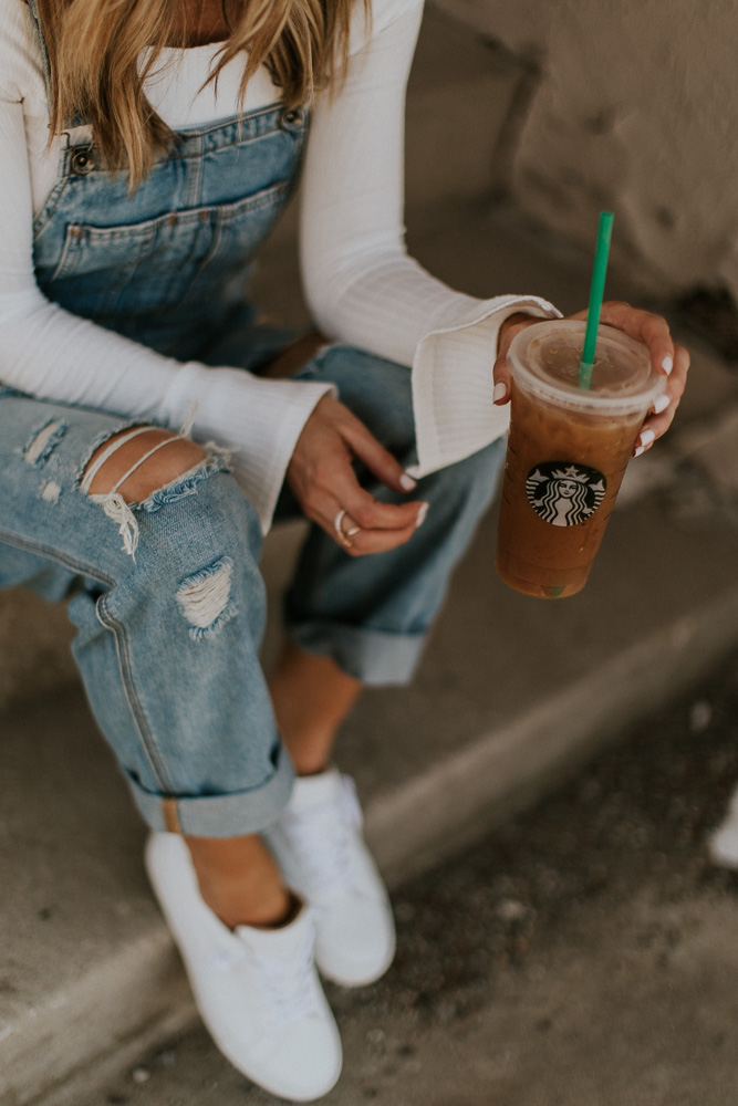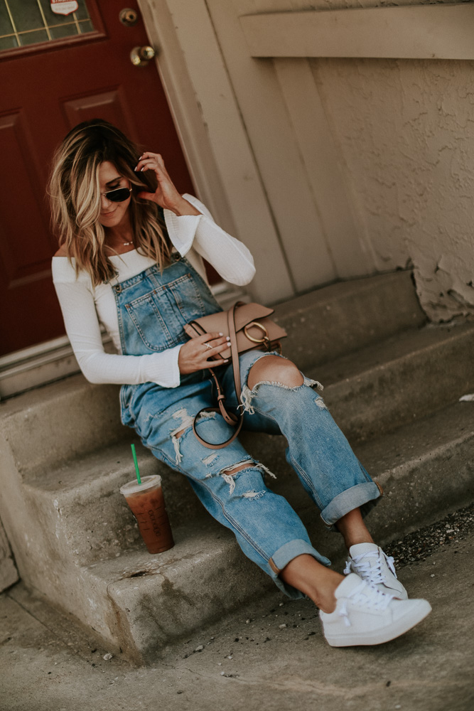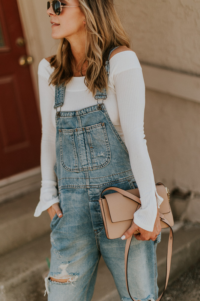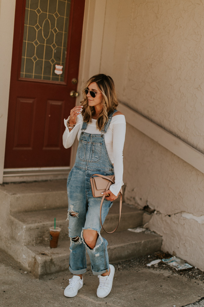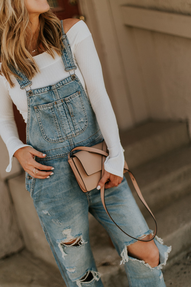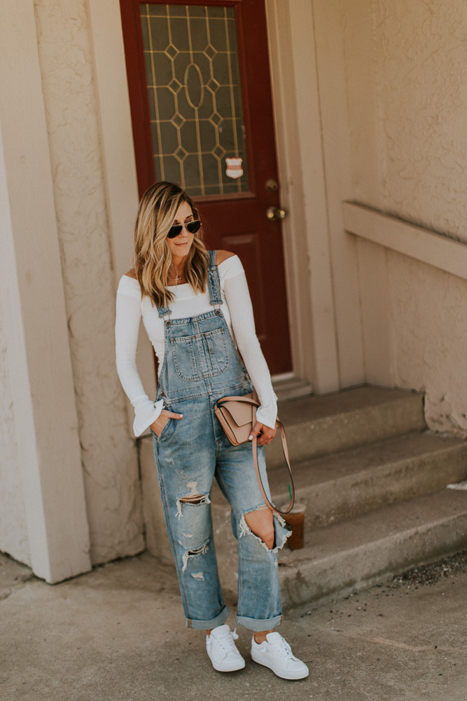 I love the rips and that the denim is lightweight and not heavy for summer. Since the overalls have more of a masculine feel, I paired with a more feminine top.