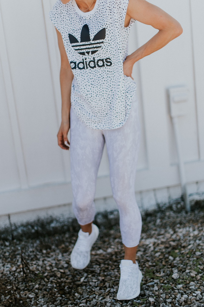Look 1: Gym adidas Originals NMB T-Shirt // adidas sneakers // legging similar here