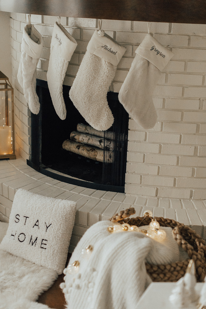 My favorite stockings are from Pottery Barn. I actually have a set in the red plaid, that I love too. I change my mind on my color theme each year!