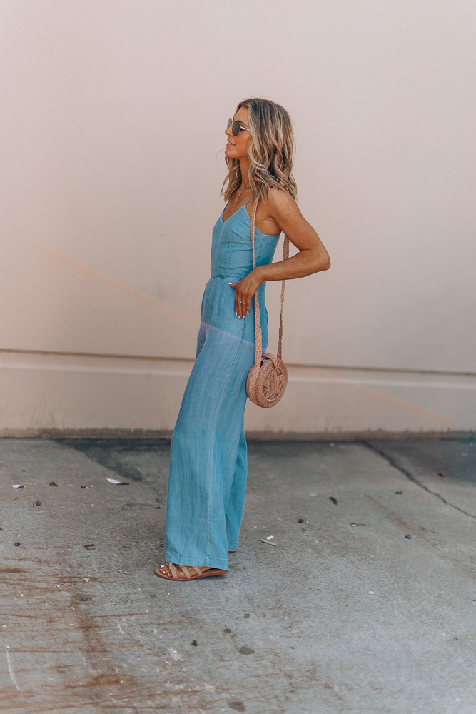 As the end of August is here, so is the end of summer. The days are slowly starting to become shorter, back to school is starting , football season is just around the corner and lots of great end of summer sales! I scored this darling Chambray Jumpsuit on major sale!
