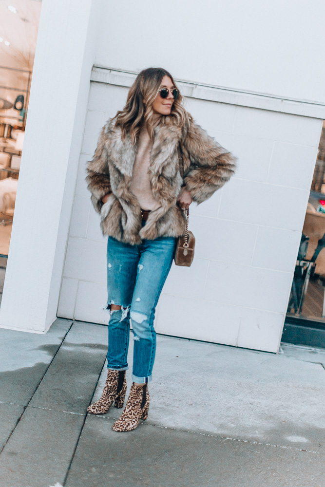 Topshop Faux Faur // Topshop Sweater /// Levi Jeans // Leopard Booties // Sunglasses // Bag