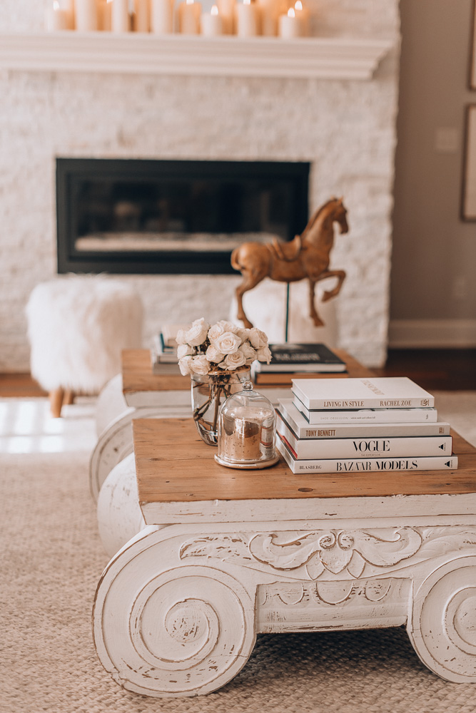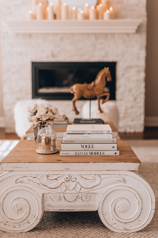 One local boutique in KC who always carries great coffee table books is Pink Antlers. The owners of Pink Antlers are also starting a styling service this Spring (@pinkantlersafterhours). They will come into your home to style surfaces like coffee tables, mantles, nightstands, counters & book shelves. They helped me with my Spring refresh of my living room coffee table & mantel. I asked them to share some tips!