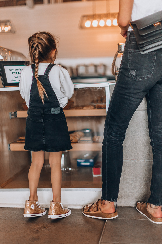 I recently got the whole family new kicks for spring. Sutton wanted glitter shoes, so I found this darling pair of gold high top convserse chucks that can you slip on and off and wear with practically anything.