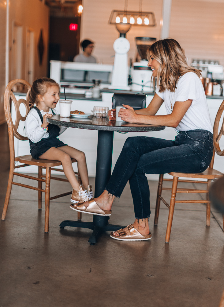 My look: Birkenstock (coppe metallic) // Jeans // Tee