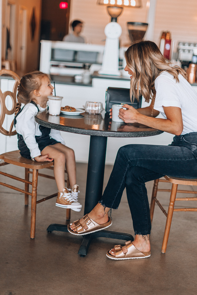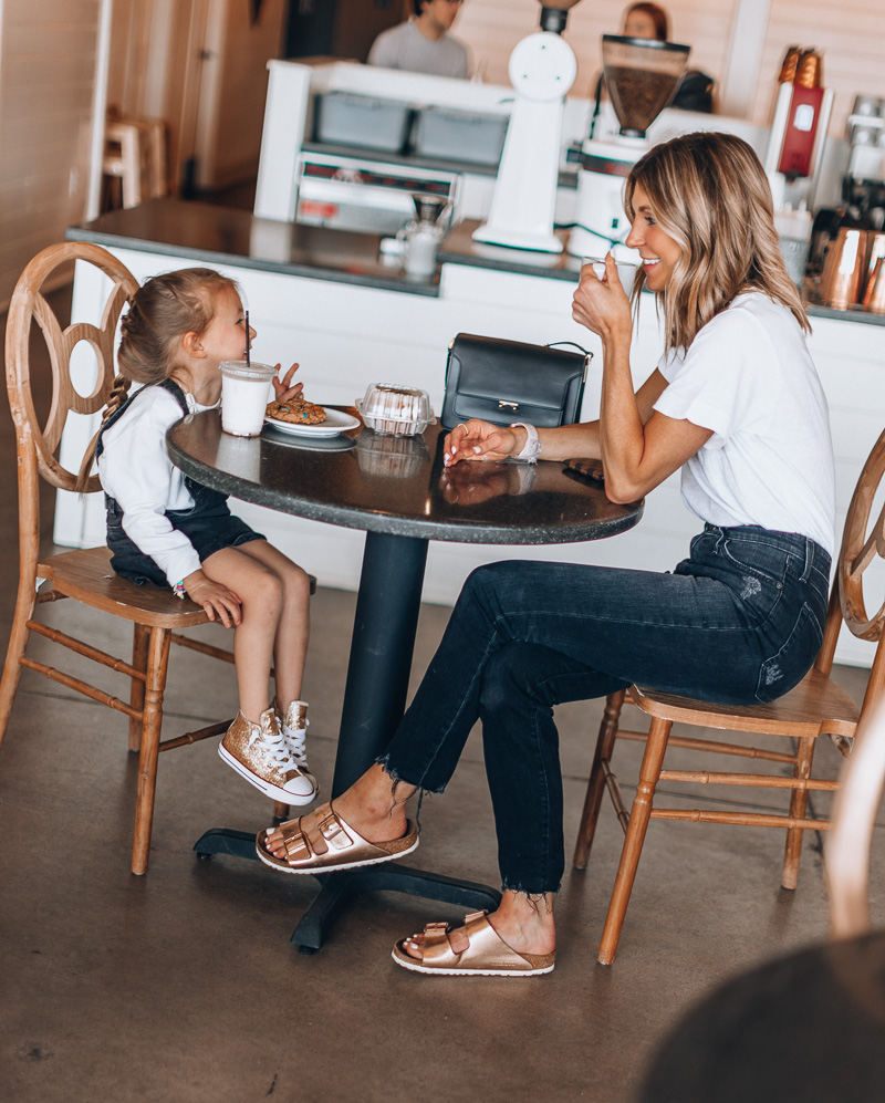 I went for my tried and true Birkenstocks in this really pretty (I call it)- rose gold color. I may have got them in the silver color too- I wear these literally all spring/summer long.
