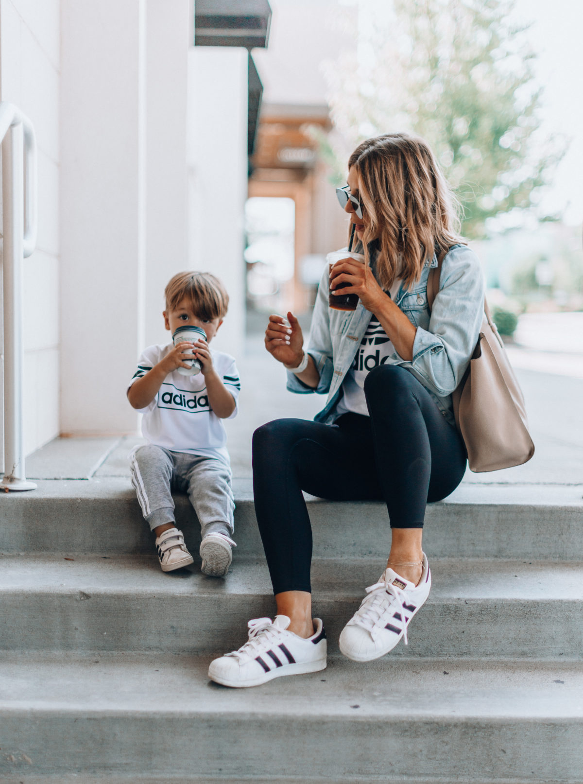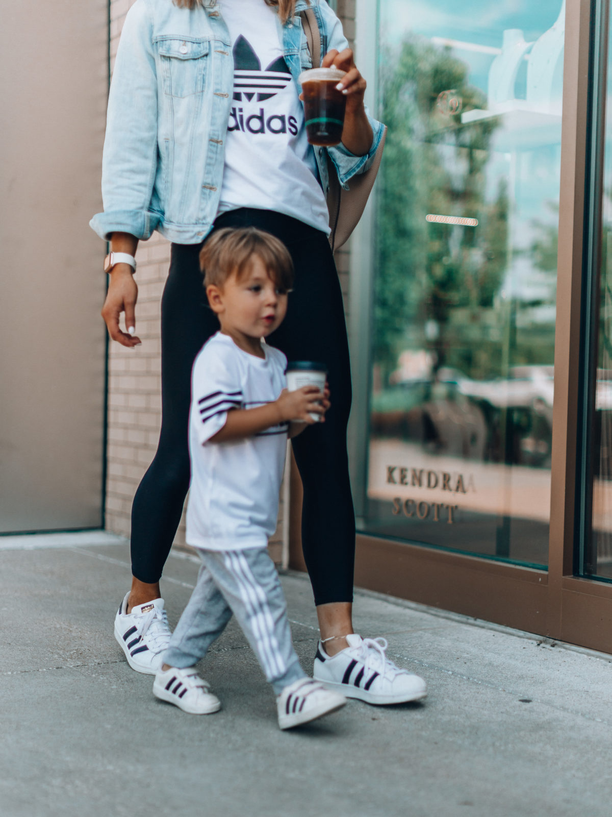 This is where our love for Finish Line comes in. Between me and the kids, our house is filled with Adidas Superstar Sneakers from Finish Line. We have them in multiple colors because they’re the perfect sneaker for fun weekend activities. And so cute, right? I’m not gonna lie, I like to have a little twinning moment with the kids whenever I can. I have to do it while they still let me, ha! This is the pair Greyson and I are wearing – one of my faves!
