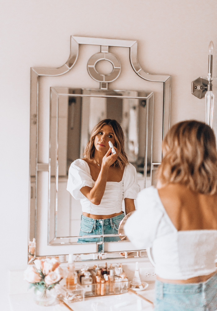 As you guys probably know by now, I’m very into skincare. My mom is in the skincare business and I’ve always tried to take good care of my own skin. As I’m getting older, I’m definitely noticing some fine lines and wrinkles, so lately, dealing with those has been my main focus when it comes to my skin. I’ve been honest that I do occasionally do botox, but it is pricey and I don’t go too often. Instead, I actually use an at-home device that works super well for blurring out those little lines that creep up with age.