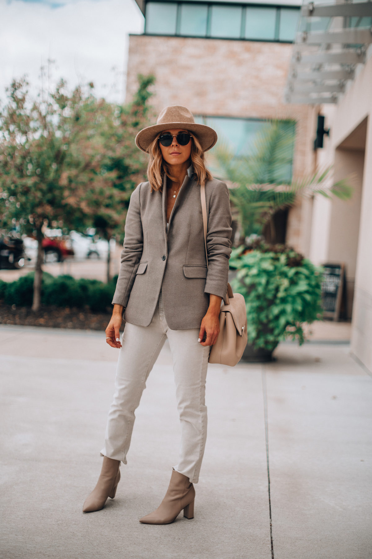 And speaking of blazers, this twill option is a must-have for any corporate gal. It’s so professional looking and comes in the cream shade I’m wearing as well as a charcoal color. Between the two of them, you’ll have tons of options to wear to the office. Layer it with a basic tank and add a great pair of boots and you have a super chic office look!