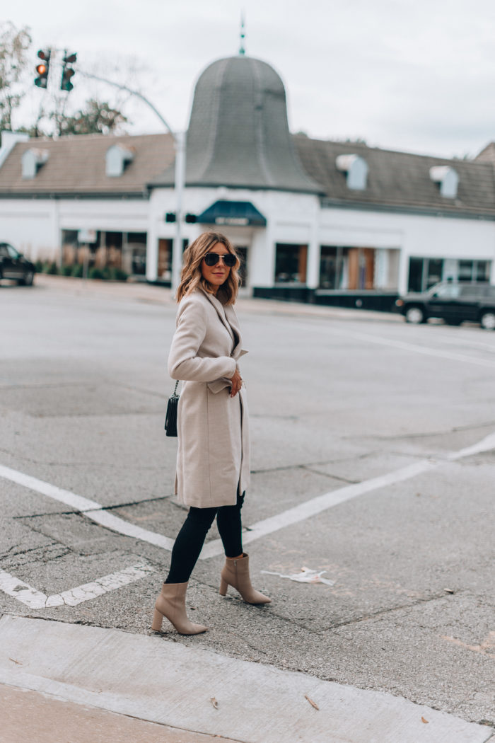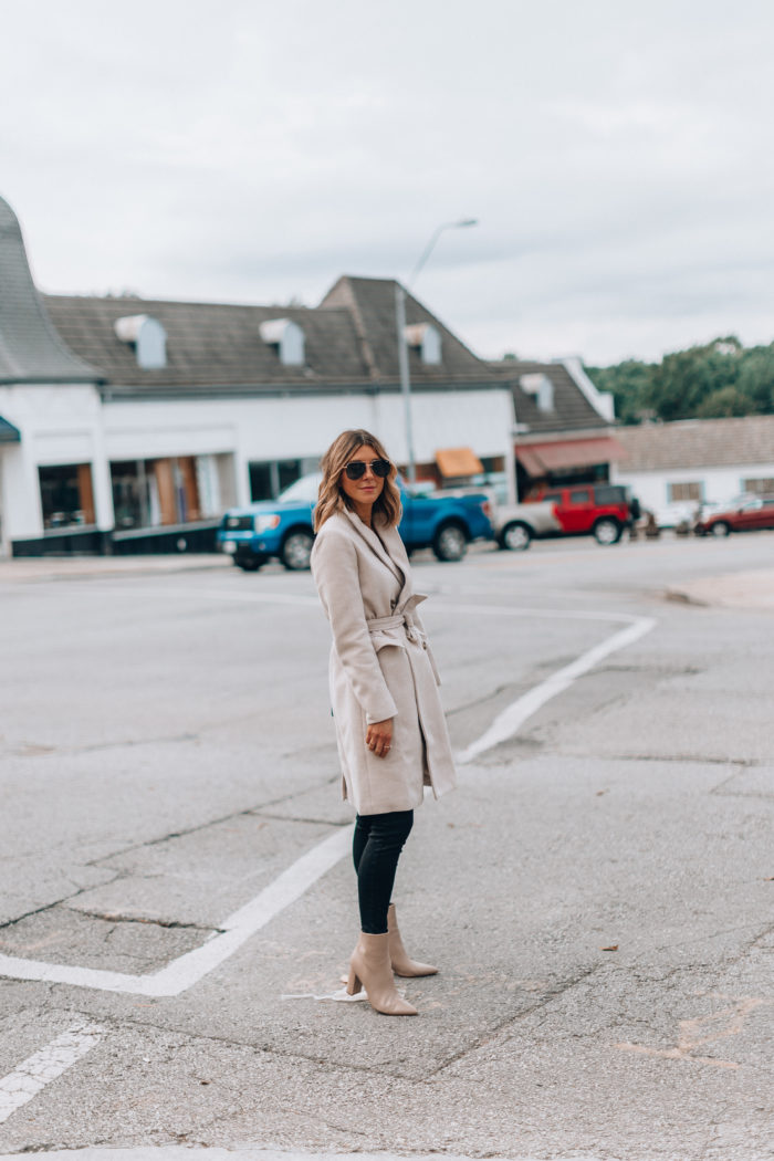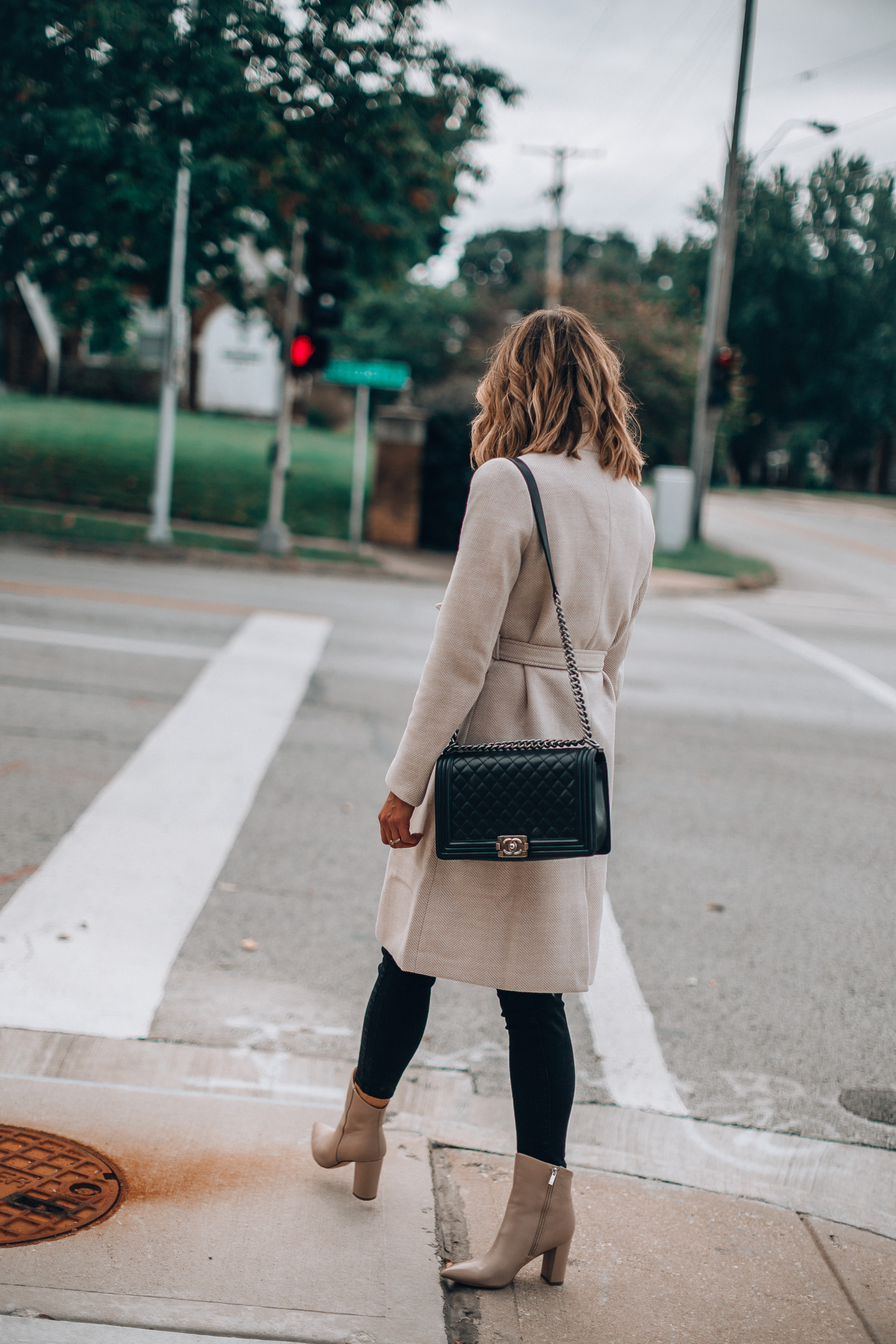 I found this amazing wool belted jacket for under $75! I LOVE the color and the subtle chevron texture. It layers great over dressy or casual looks and the belted waist is SO flattering!