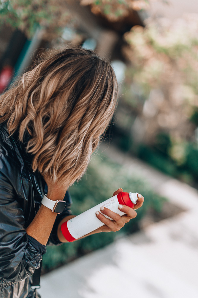 I have little time in the morning to get ready – usually only 15 minutes so having the right products that work and are no-fuss is what I need. I try to alternate days I wash my hair so days I don’t wash my hair I use lots of dry shampoo. I am OBSESSED with lululemon’s new Dry Shampoo– it smells so good and it’s completely invisible, so no white streaks! I have a travel bottle in my gym bag for on the go. I also use their non toxic deodorant and got my husband hooked on it as well! I never used spray deodorant before and love how refreshing this one feels! Lastly, apply a quick moisturizer and lip gloss! Having no fuss (go-t0) products I love that get me ready for the day – helps save me time!Â