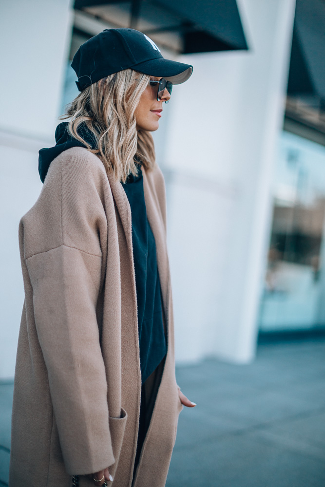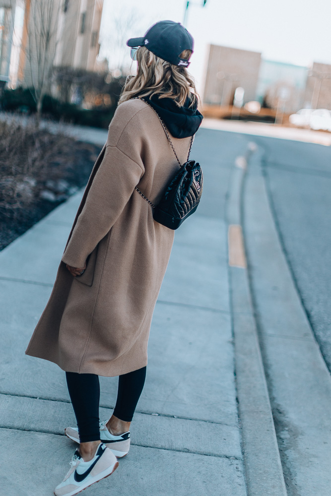 Layers during the seasonal transitions are a must for coziness. Around the house I’ll wear a pair of high waisted leggings (always!) and hoodie, but if we’re headed out the door somewhere I love putting on a long cardigan. The cardigan looks dressy and can definitely be dressed up, but I love it to pull together an ahtleisure look.