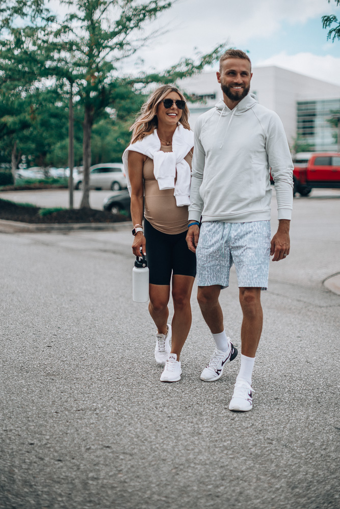lululemon has a few different styles as well as lengths, but just like their leggings, I prefer the Align style. The shorts are made of that same buttery soft material and the best part? They stay up! I’m never walking around trying to pull my shorts up – they stay in place – even with the bump! If you’ve ever worn biker shorts or leggings that fall down, you know how frustrating it can be and make having a pair that actually stay up worth every penny.
