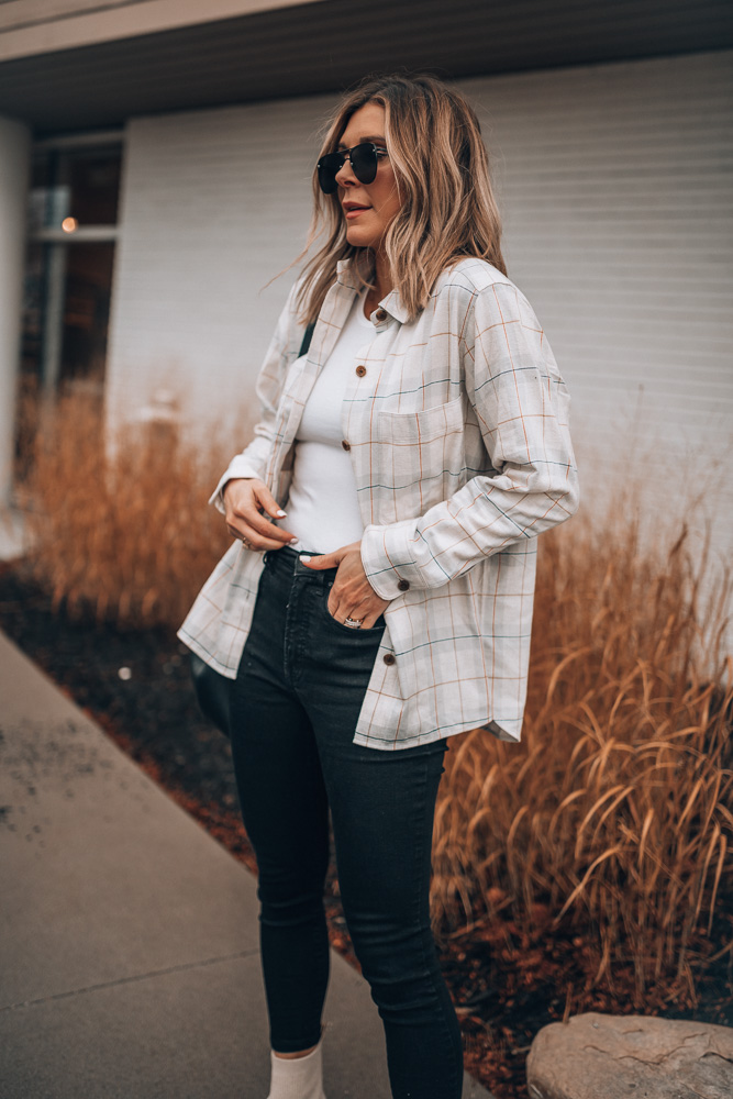 Next up is a layered look with the best long sleeve crewneck tee in the game! It looks so sharp under this cashmere throw sweater, which is so so soft! Or you could easily layer it under my other look that features this organic cotton flannel shirt. A flannel shirt is something you always want to have hanging in your closet! I recommend something oversized and that’s the exact fit of Everlane’s flannel, which also comes in three different colors! Oh and don’t forget this cashmere beanie – something you’ll get so much wear out of for years to come! It also makes the perfect gift!
