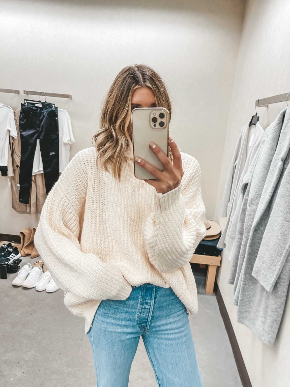 Review: This is the Free People sweater in the color “Powder Puff”. Such a pretty white color that will not only be perfect for the fall but great for winter and spring!