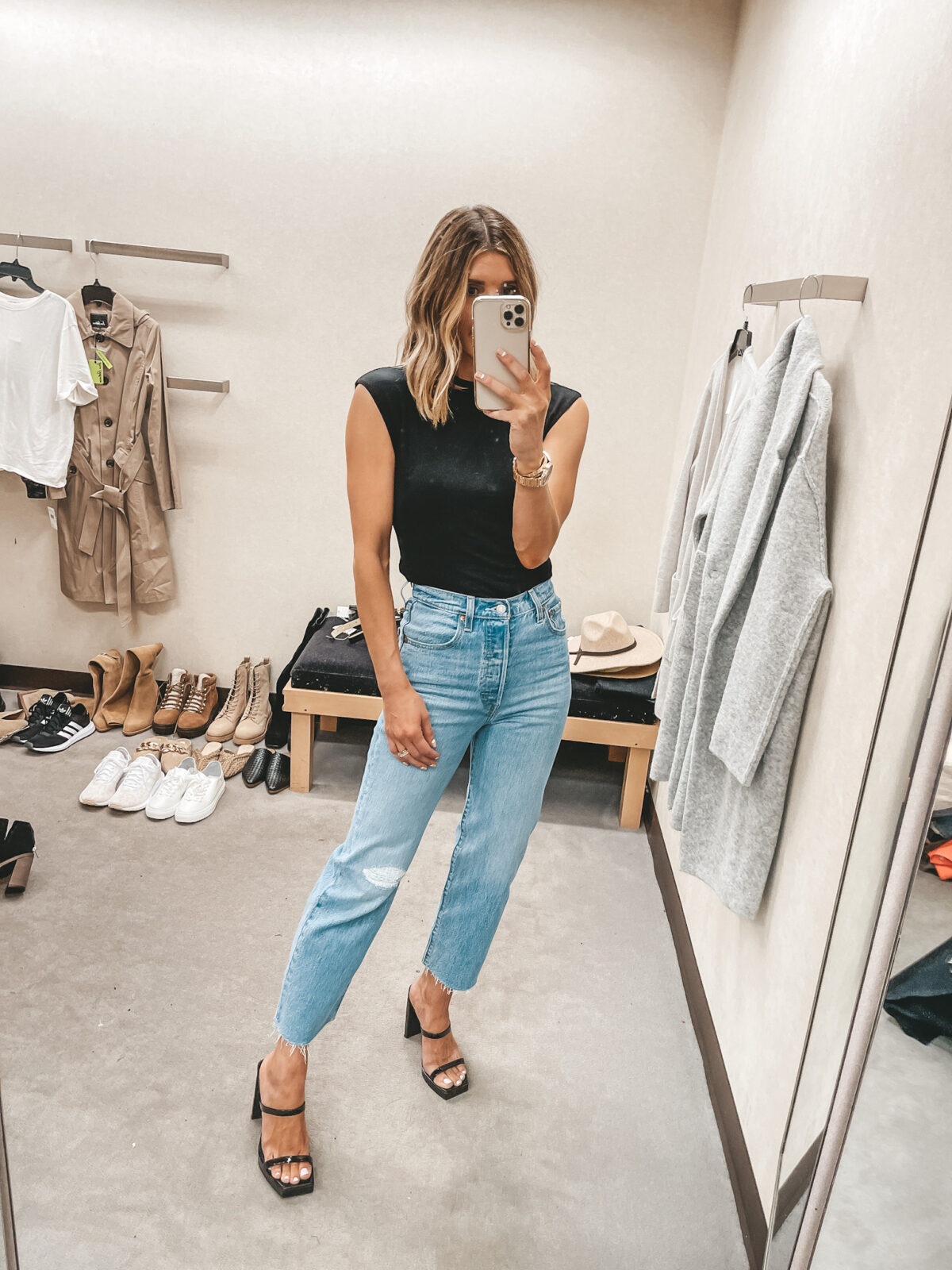 Review: I was SO excited to see 2 great pairs of levi jeans in the Nordstrom Sale this year! I own so many pairs of levi jeans and they are ones I wear year after year and just love levis. This pair is a super high rise staight leg jean with no stretch. I love these jeans with boots, heels, or sneakers – dressed up or down!