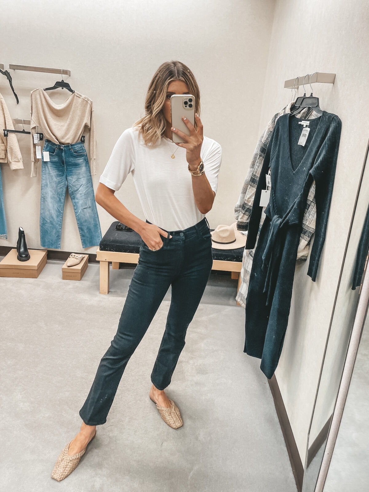Review: The best selling 5 star madewell skinny jeans are included in the sale! I feel like these need no review. This pair of black skinny jeans from the #nsale will def sell out quick. These are soft, stretch and high waisted!