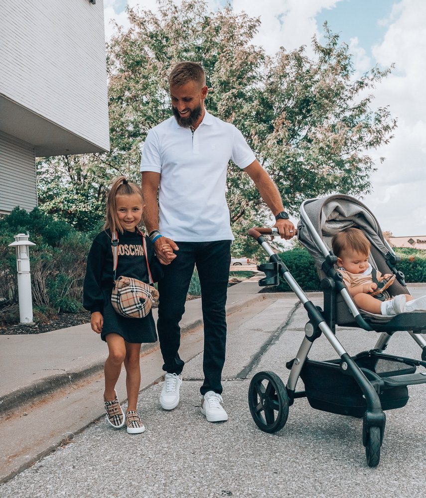 I love that I can shop for our whole family on mytheresa.com. They have an amazing selection of designer pieces that make great additions to each of our wardrobes. Especially for the kids, I love getting them a great pair of [sneakers] or a full sweatsuit, like Greyson is wearing, so that they can mix and match throughout the year. Sutton, who it seems turned into a big girl overnight, has started loving handbags, so we got her this Burberry purse that she can use at school or on the weekends. Her sweater dress will get so much wear throughout the year, as will her Burberry sneakers. We loved this sweatsuit for Greyson because he can mix and match with jeans or tops throughout the year. Fresh white sneakers are always a must have (thanks to Folex, lol) and these were perfect.