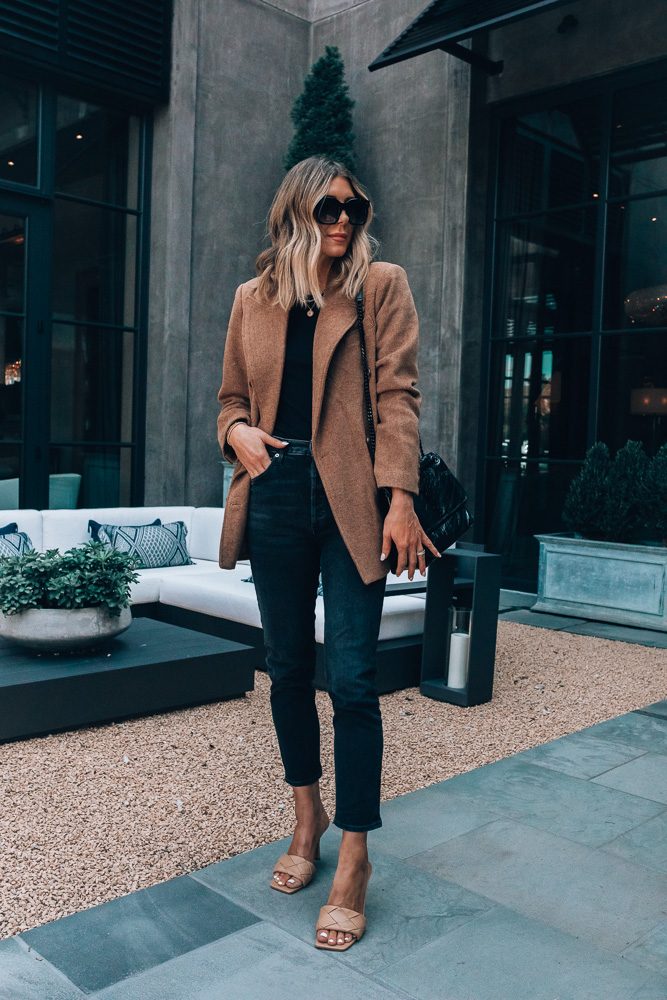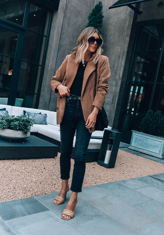 When it comes to workwear, I love a good blazer. This camel blazer is especially perfect as we head into fall as it’s warm enough to wear outside when the temps cool off. I paired the blazer with my new favorite power bodysuit. “Power” because it has delicate shoulder pads which I love – adding a flair of femininity. I ended up getting it in every color! A great pair of black jeans (similar here and here) are essential for a workwear wardrobe, and I end up wearing mine often outside the workday. Love these oversized sunnies, and I’m so glad my favorite nude heels are now back in stock! I wear them a lot and they work with so many different outfits.