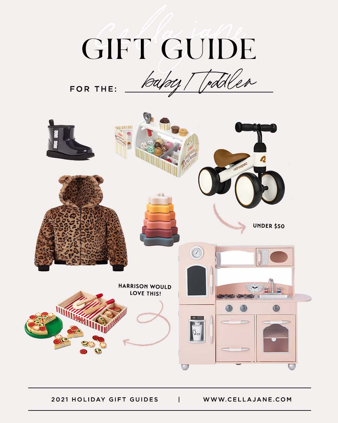 Boots // Ice Cream shop toy // Bike toy // Jacket // Rainbow stacker toy // Pizza set toy // Kitchen set