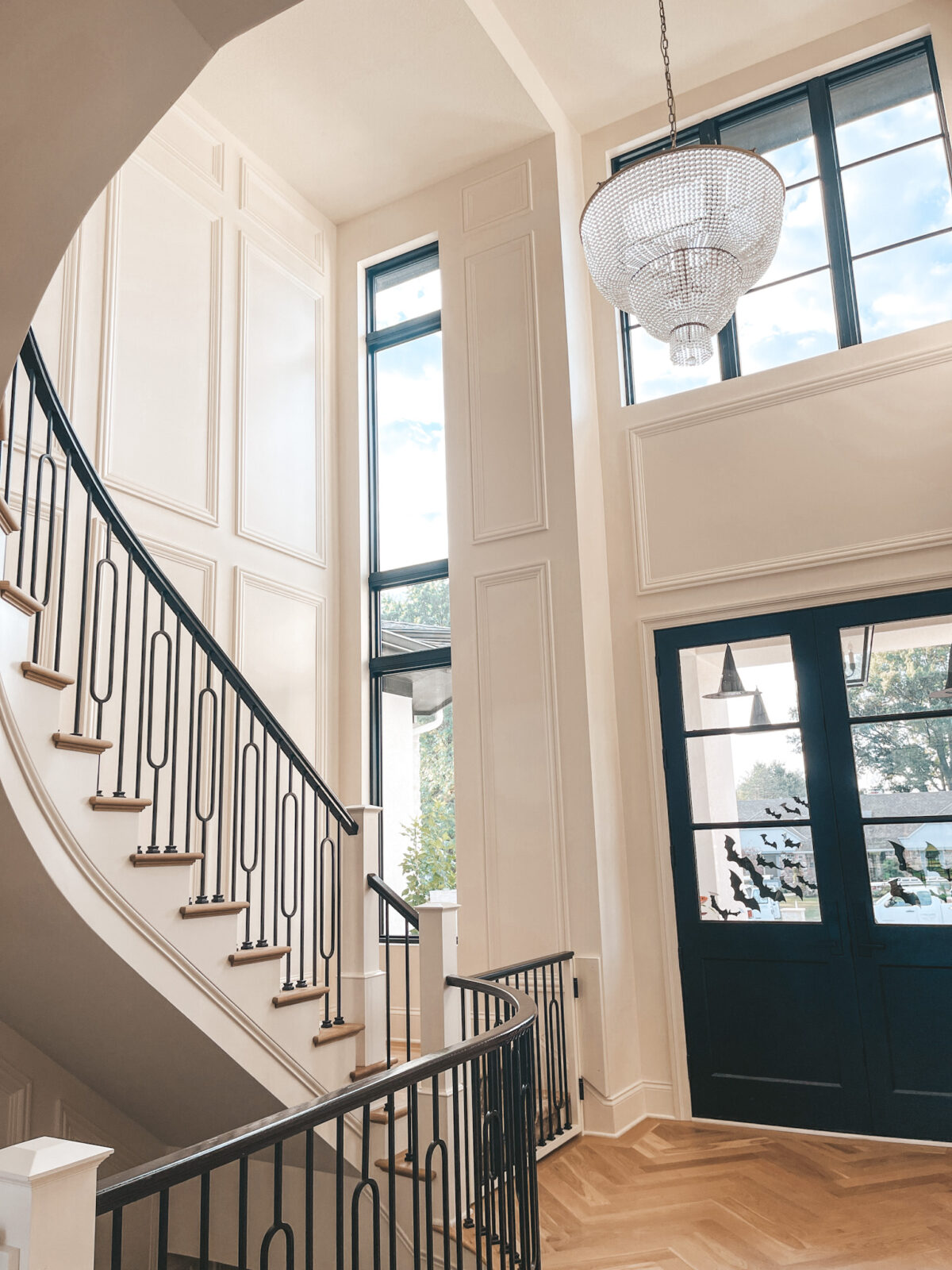 Stair Case Runners: Upstairs runner: Stark Carpet, Style: Antilocarpa, Color: Sand, Rug version here; Downstairs runner: Anderson-Tuftex, Style: Stroll, Color: Shoreline