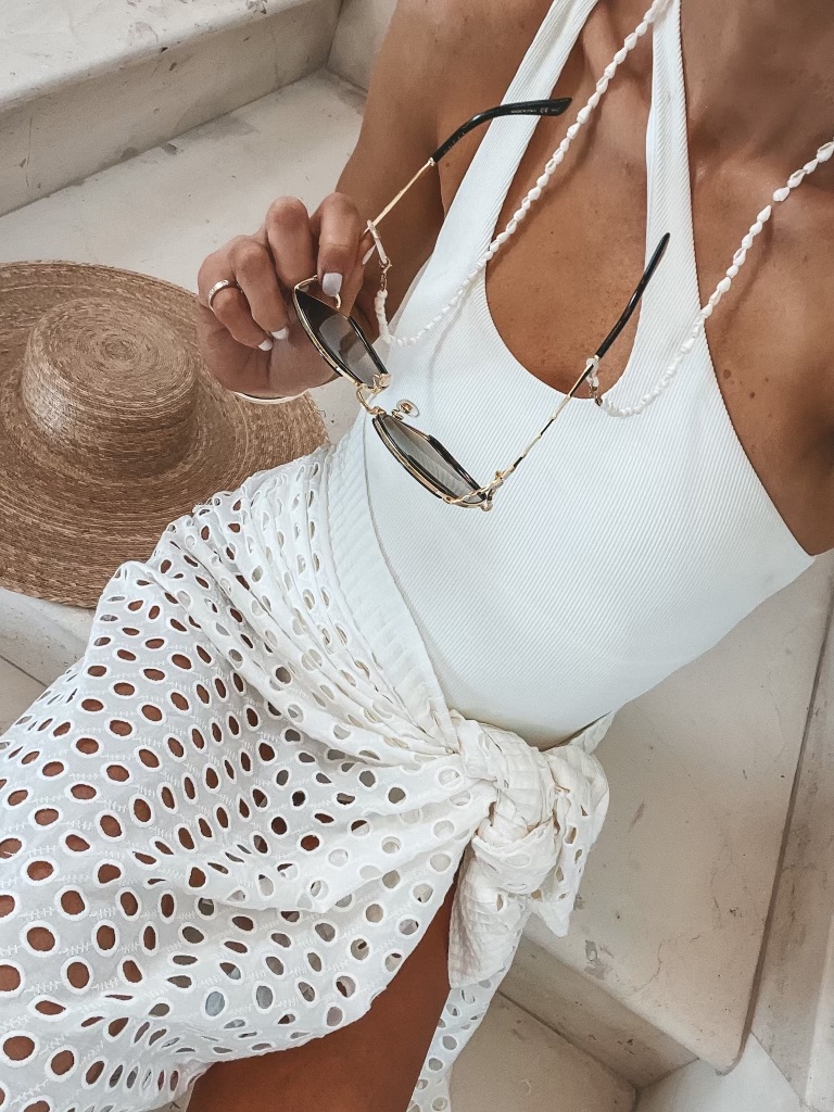 One: Swimsuit // Cover Up // Sandals // Body Oil // Hair Clip // Earrings // Sunglasses