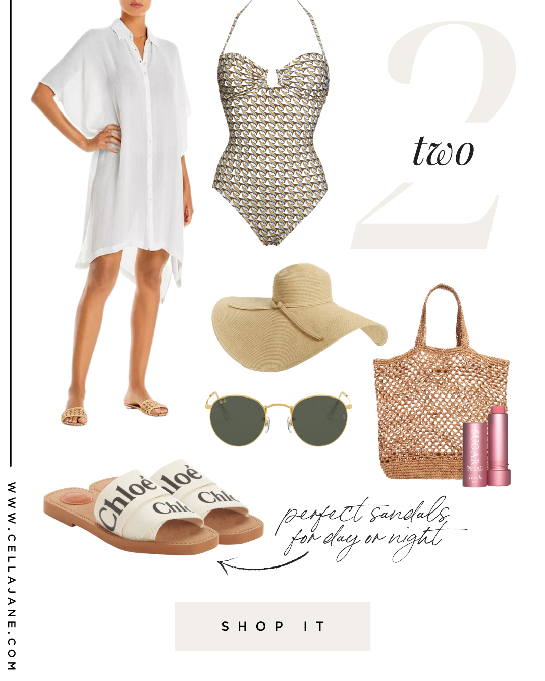 Two: Swimsuit // Cover Up // Sandals // Sunglasses // Tote // Hat // Lip Balm
