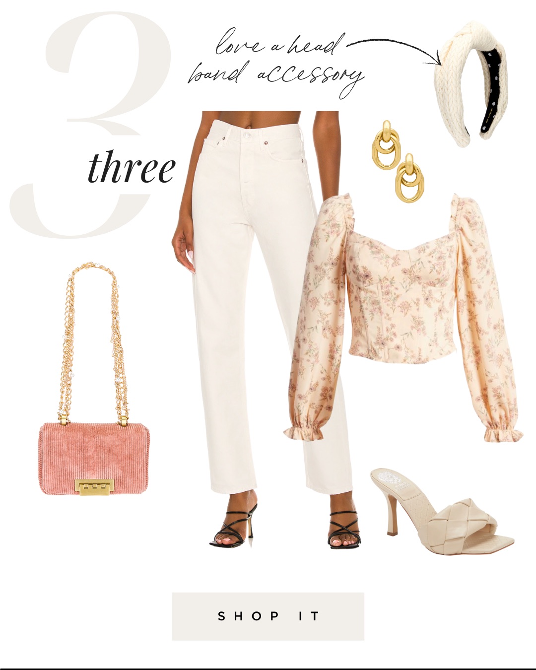 Blouse // Jeans // Headband // Earrings // Heels // Bag