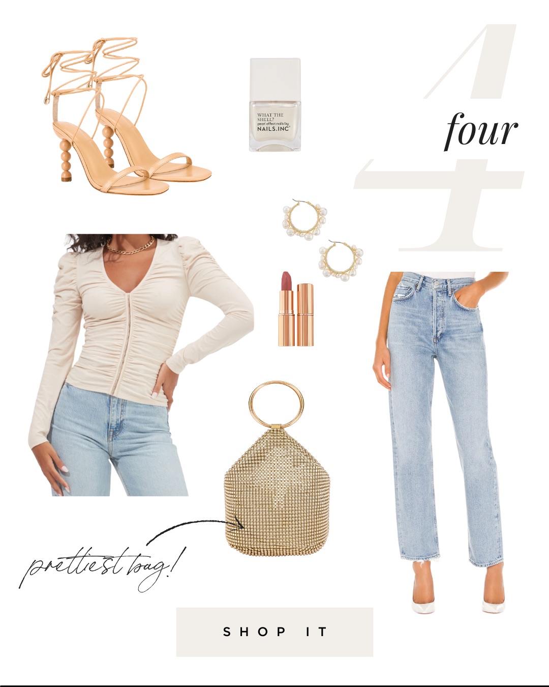 Blouse // Jeans // Bag // Heels // Nail polish // Hoops // Lipstick