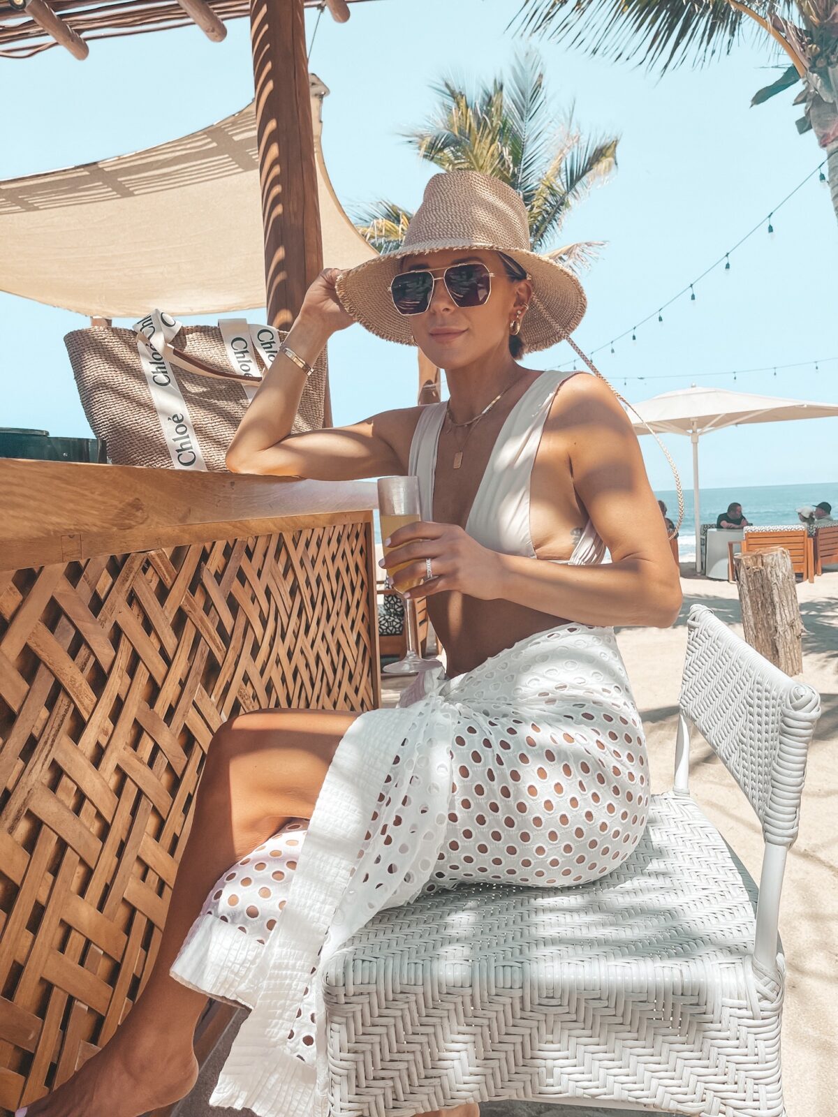 Hat // Sunglasses // Bikini top // Bikini bottoms // Cover up // Bag