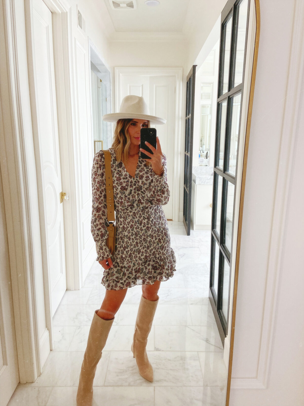 FLORAL PRINT DRESS // BOOTS // BAG