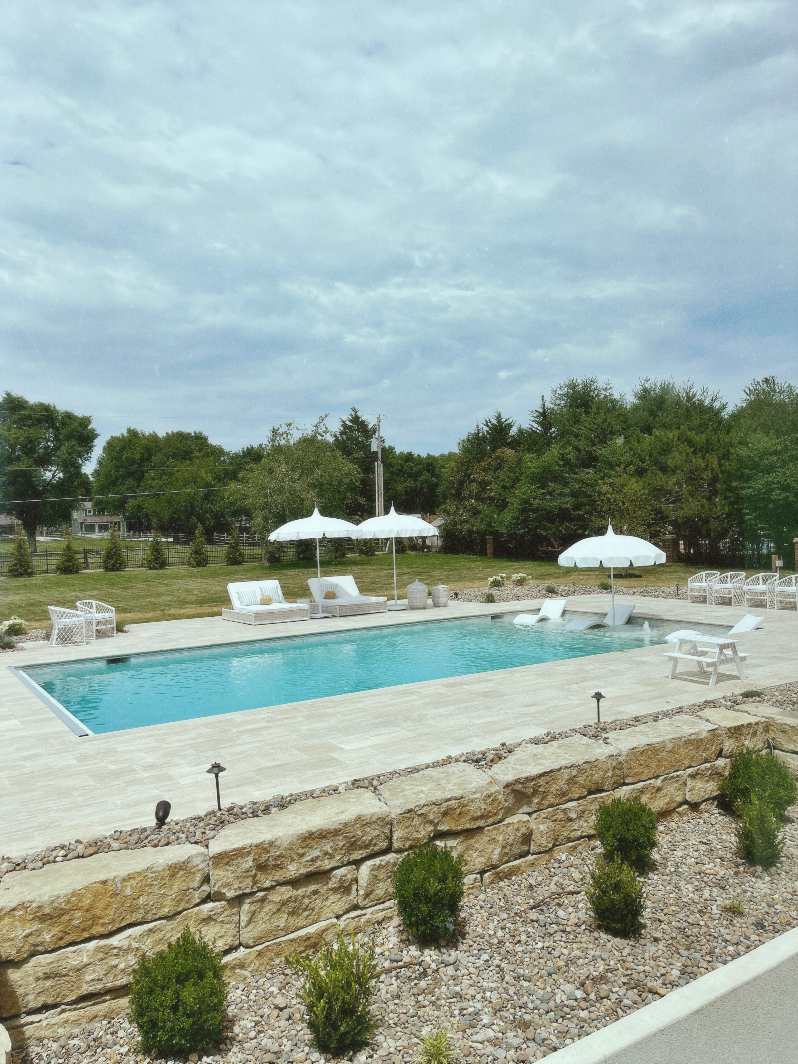 Some items are from Restoration Hardware outdoor and some are from Serena & Lily. I love what we have! Linked the Serena & Lily here. There is some maintenance with all white cushions but I love the look. We chose all performance fabrics so they can be easily power washed to clean and get out spots.