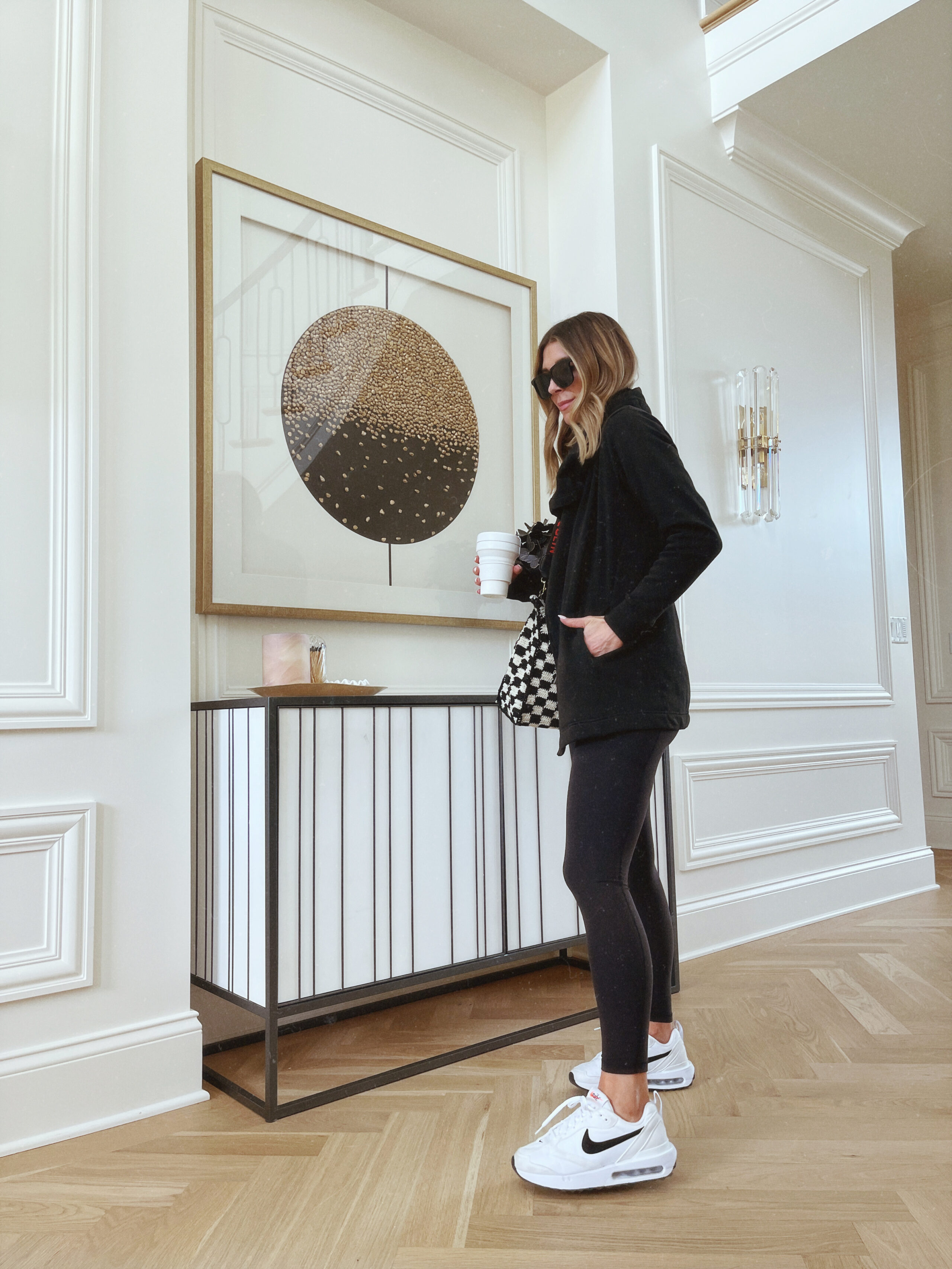 Shacket (size small) // Sweatshirt (size small) // Leggings (size small) // Belt Bag // Sneakers
