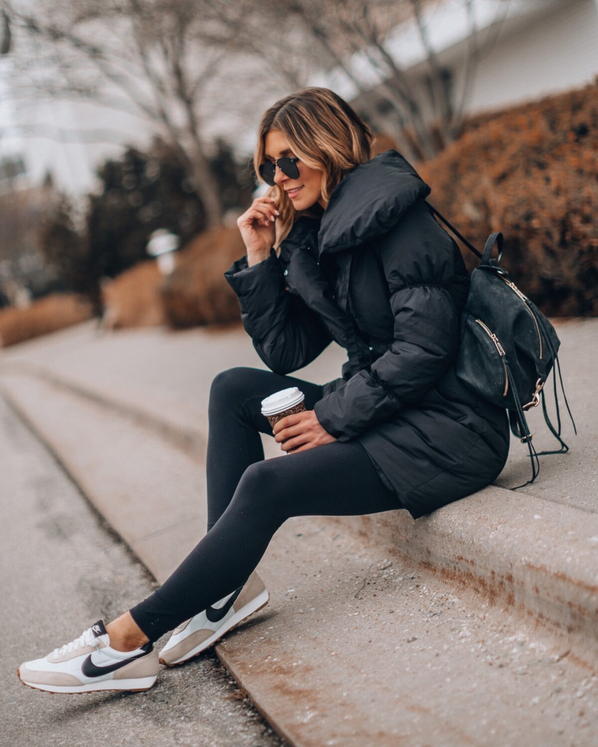Puffer Coat (similar) // Leggings // Sneakers // Sunglasses // Backpack