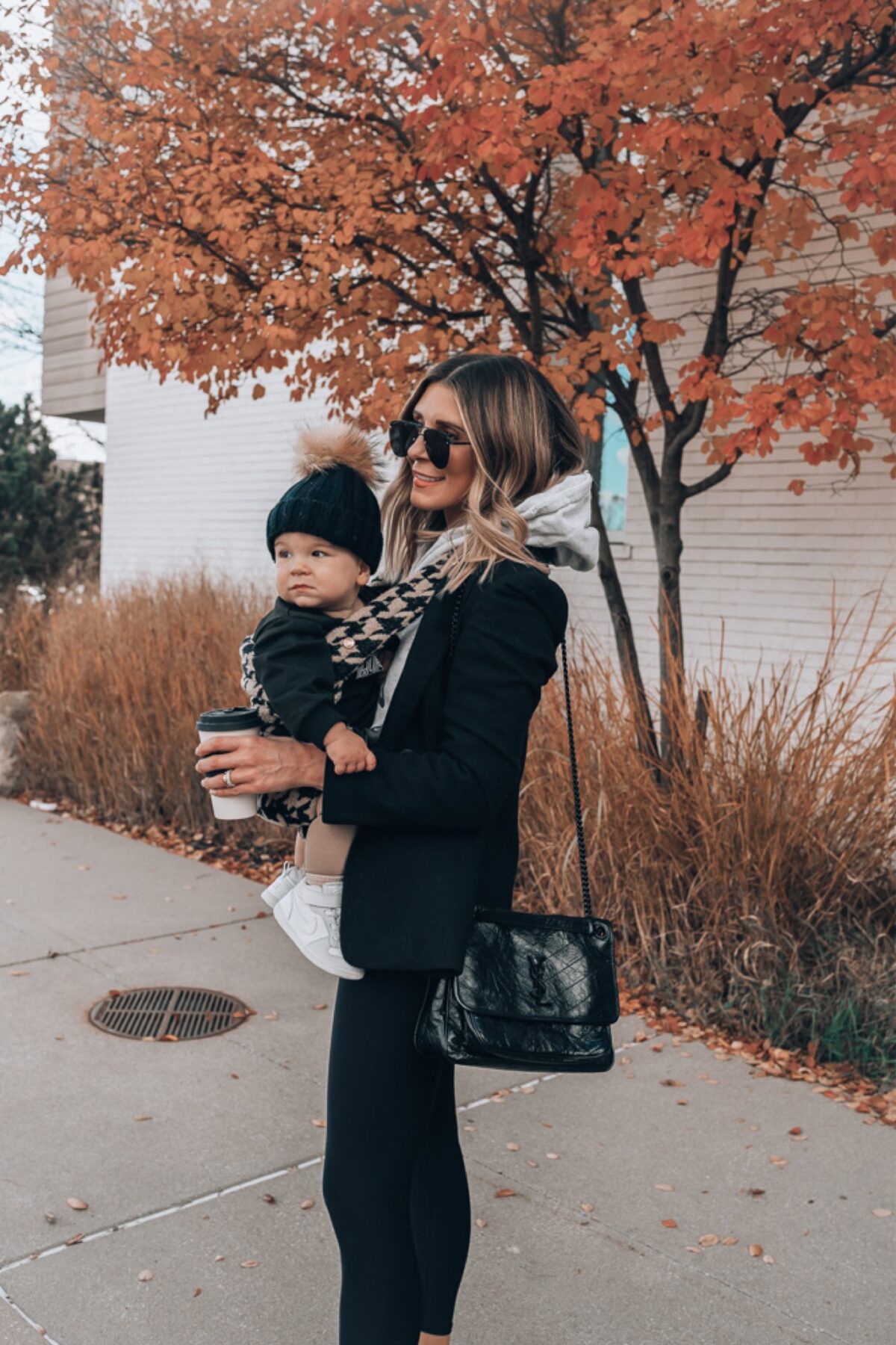 Hooded Sweatshirt // Blazer // Leggings // Handbag // Sunglasses // Harrison’s Sneakers