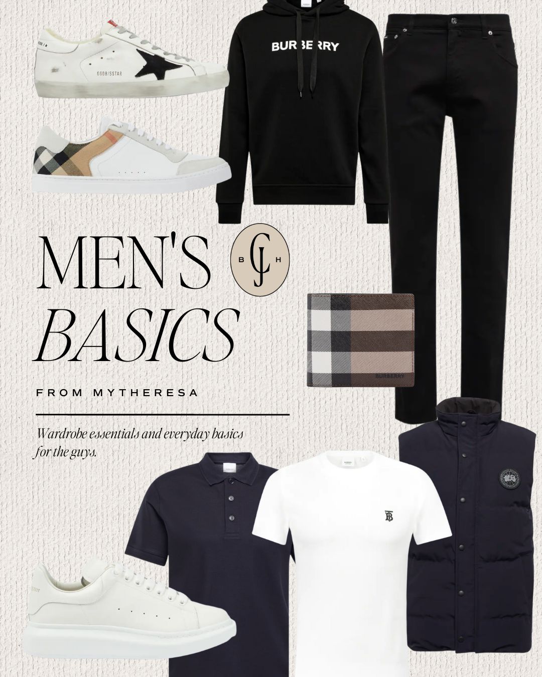 Golden Goose Sneakers // Burberry Sneakers // Burberry Hoodie // Black Jeans // Burberry Wallet // Down Vest // White Tee // Polo Shirt // Alexander McQueen Sneakers