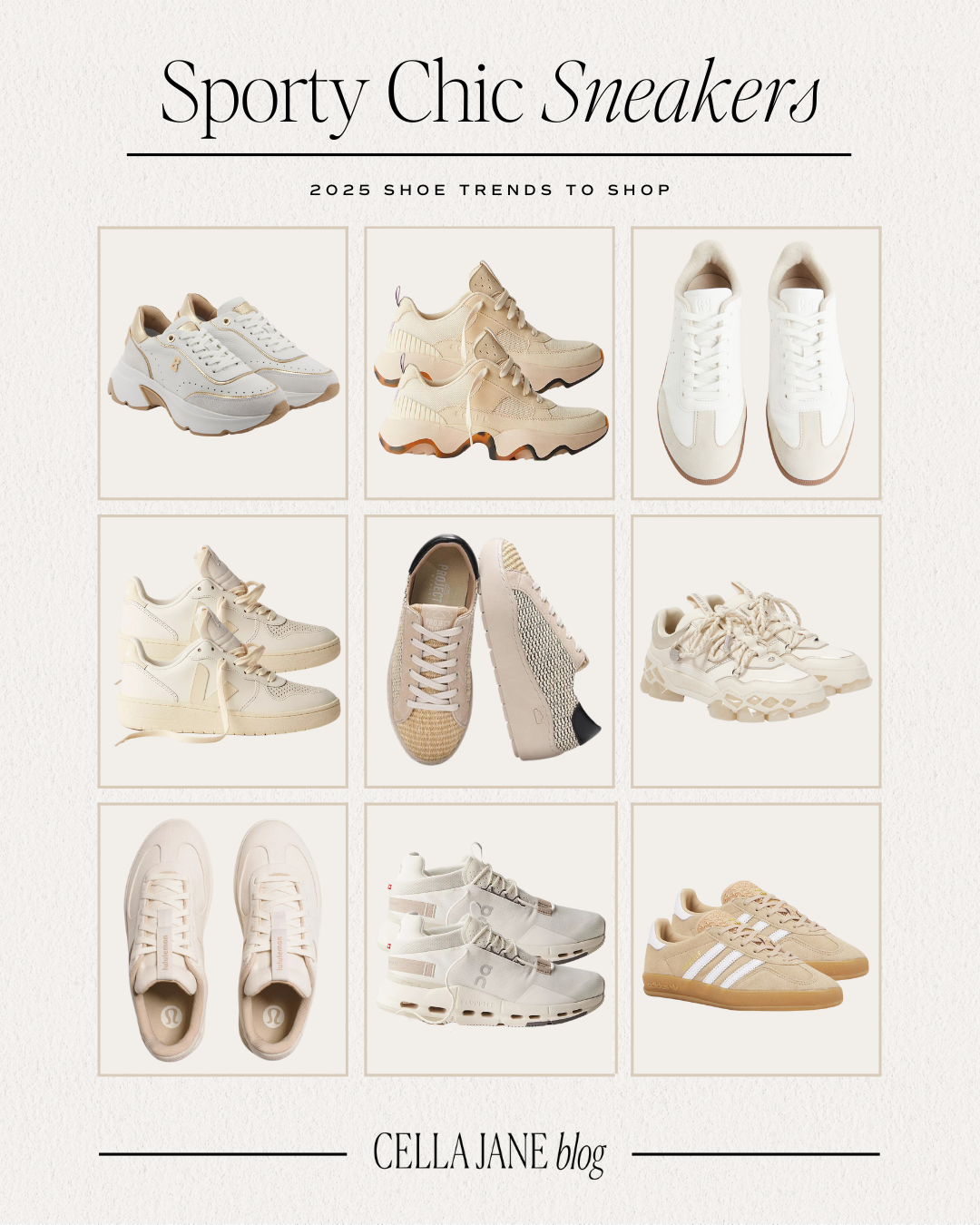Sneakers continue to reign supreme, but 2025’s versions blend function with fashion. Expect to see more sculptural soles, textured materials, and neutral color palettes that work effortlessly with both activewear and street-style looks.