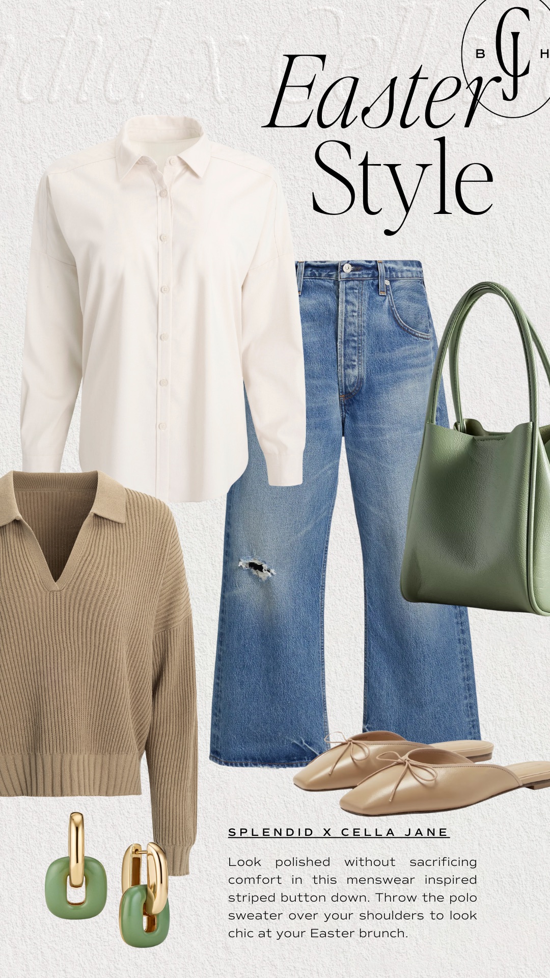Button Down // Polo Sweater // Jeans // Stevie Hoops // Ballet Mules // The Hollace Tote