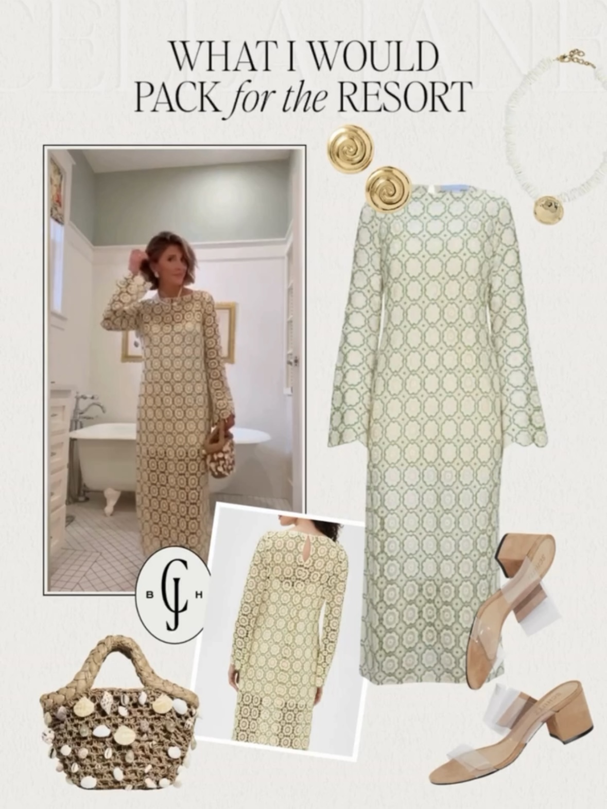 I love how the subtle pattern and soft neutral tones make it perfect for resort dinners, paired with simple heels and a woven bag. Chic, comfortable, and beautifully understated.